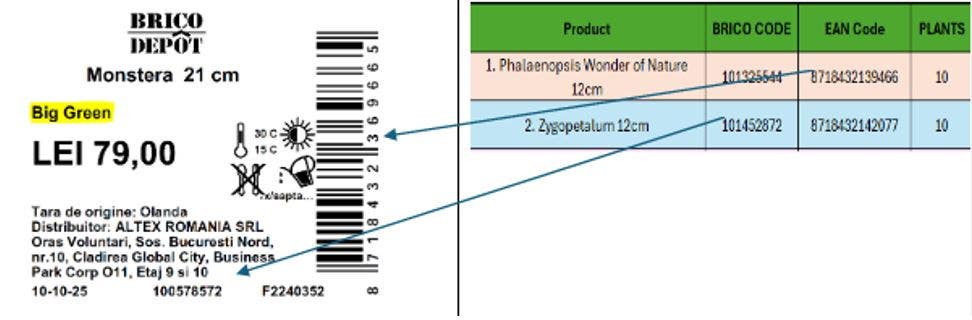 This information shows which products are on the trolley and for which concept table(s) they are intended.